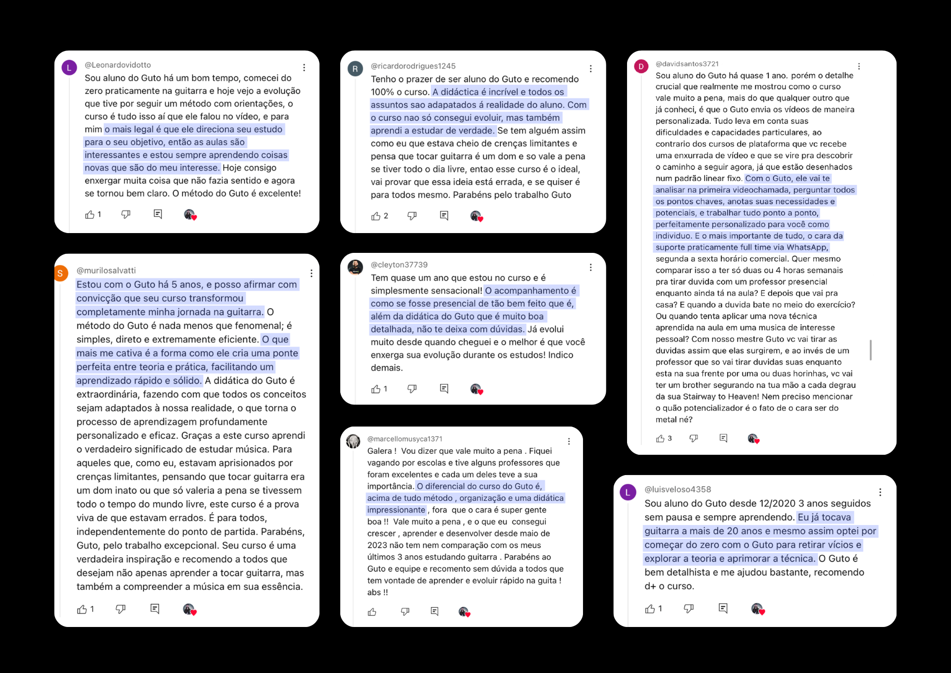 Desde 2004, Guto ensinou literalmente mais de 450 alunos particulares, desenvolvendo uma metodologia capaz de se adaptar a diferentes perfis e acelerar a evolução de cada um, independente do ponto de partida.