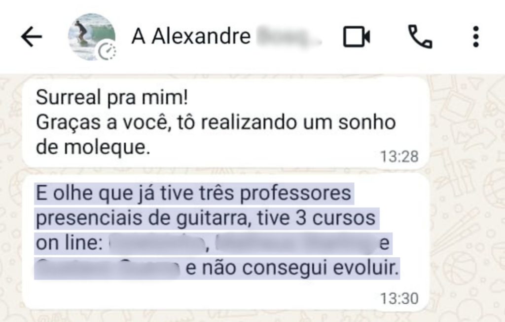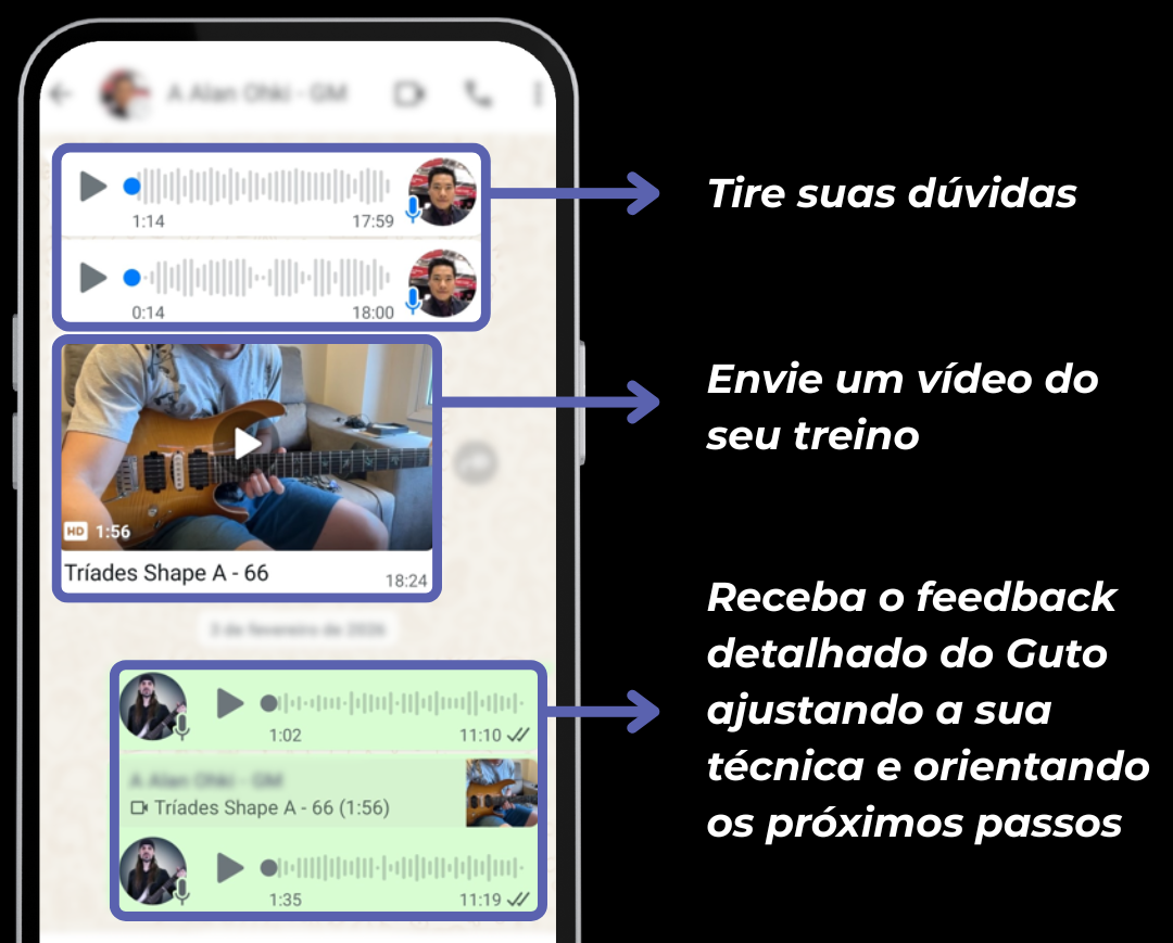 Você terá um acompanhamento real, feito sob medida para o seu momento na guitarra